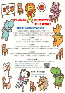 地域子育て支援「プティあいみー おひさまクラブ(0~2歳対象)」を開催します。