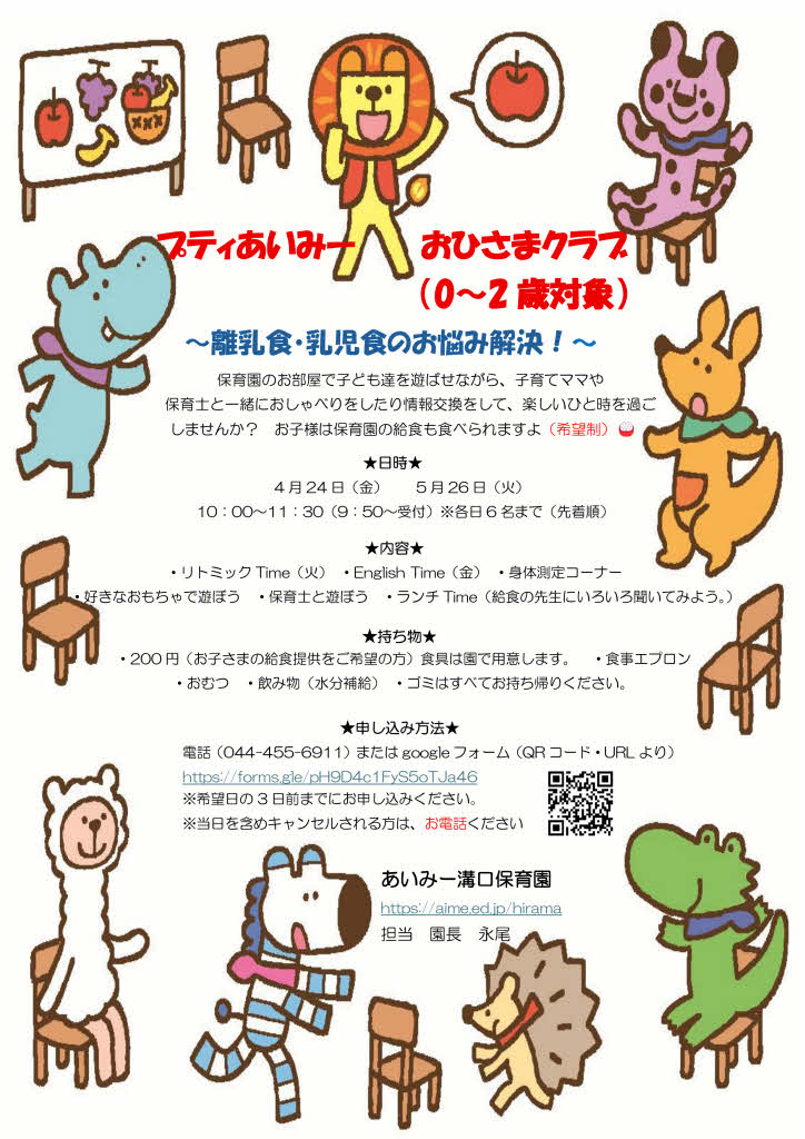 あいみー溝口保育園のお知らせ